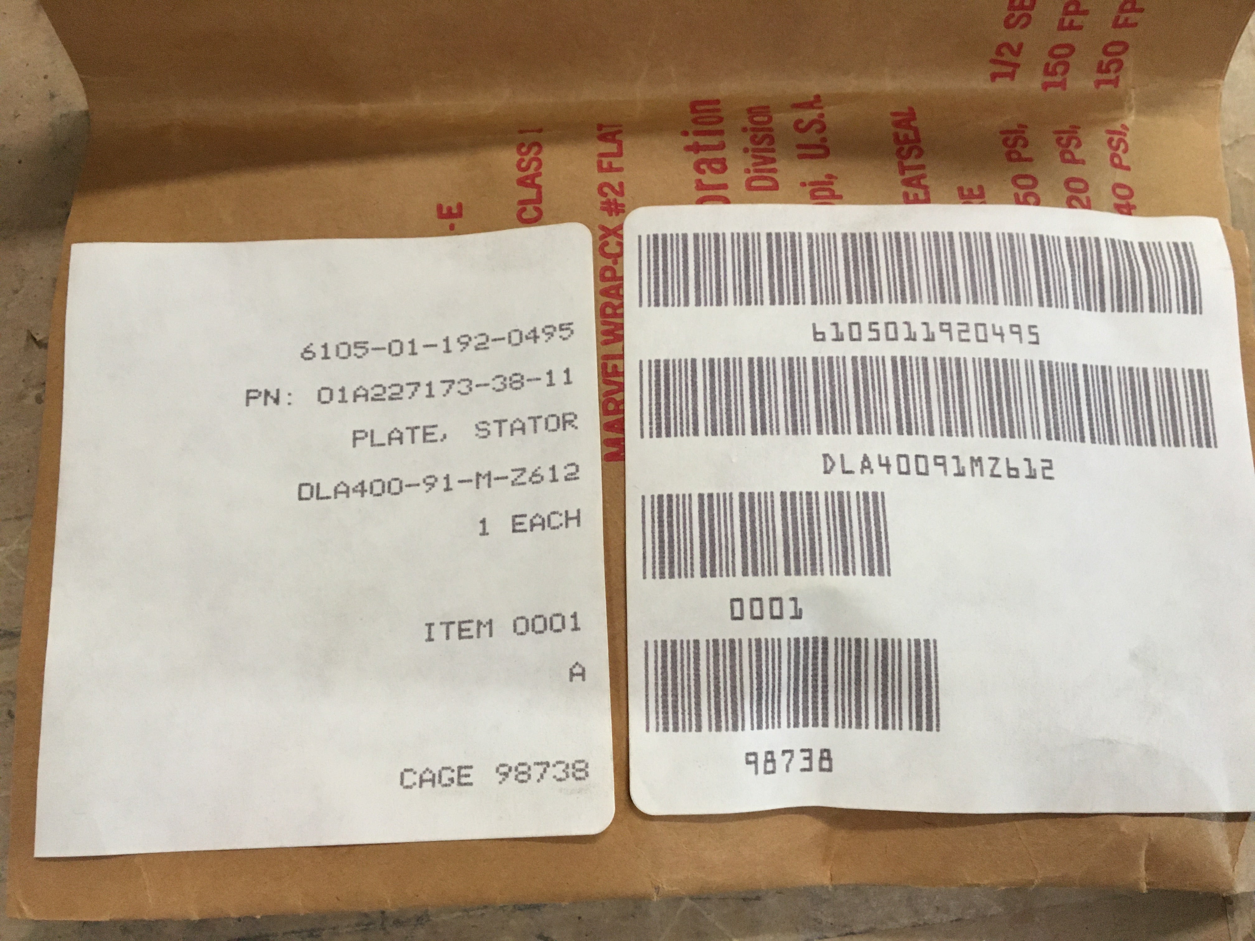 Herley Chicago Stator Plate P/N: 01A227173-38-11 NSN: 6105-01-192-0495